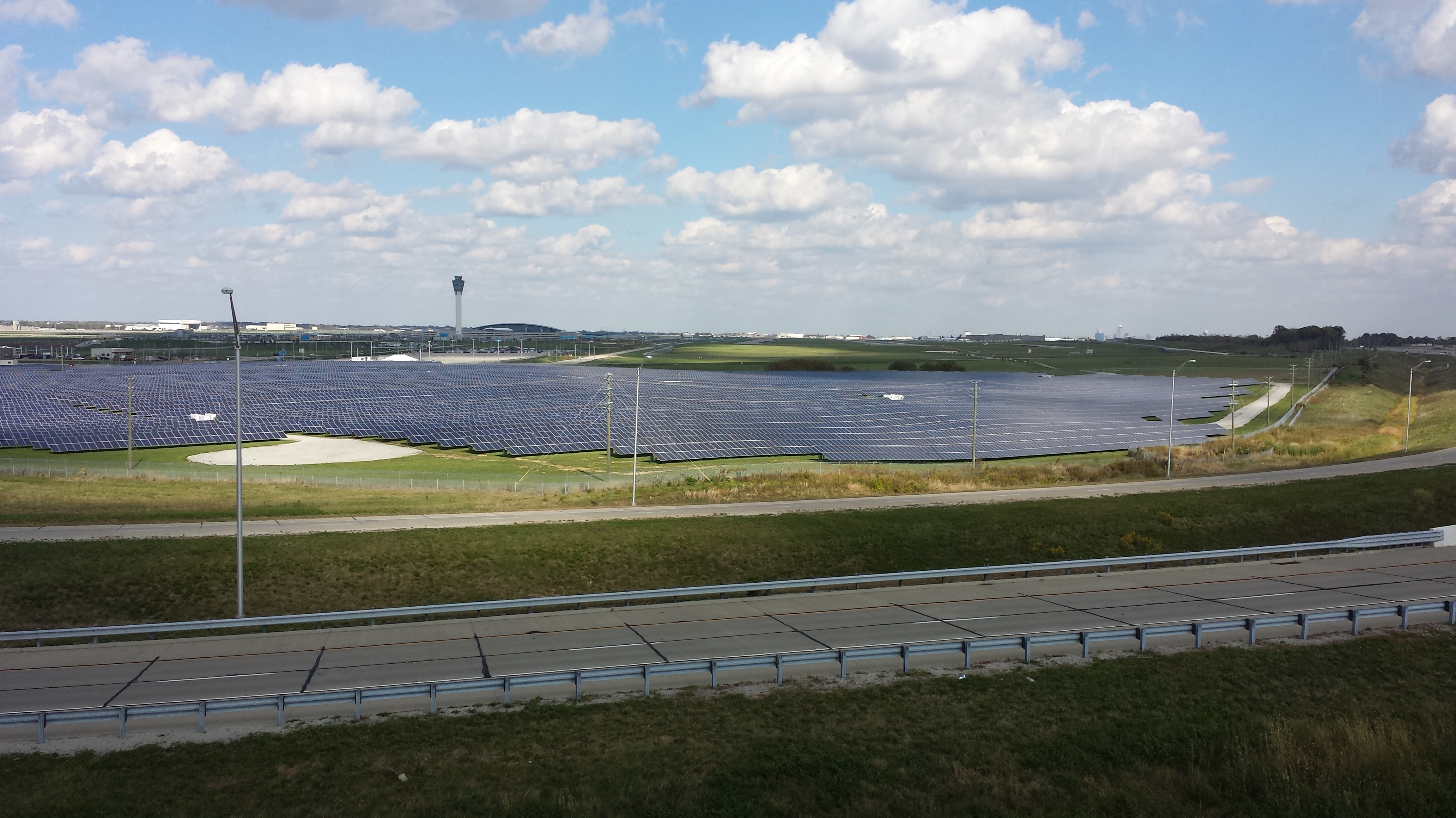 In a state where 84% of electrical generation comes from coal fired power plants (nrel.gov), it is massively important to introduce renewables on a large scale. The 12 MW system installed on Indianapolis International Airport property was implemented with the goal of growing Indianapolis Power and Light’s renewable energy portfolio, and setting the tone for Electrical Generation in the years to come. Not only does this Photovoltaic system offset the need for coal fired generation, it is in a spot visible to anyone flying in and out of the Indianapolis International Airport, sending a message to travelers that the State of Indiana is starting down the road to sustainability.